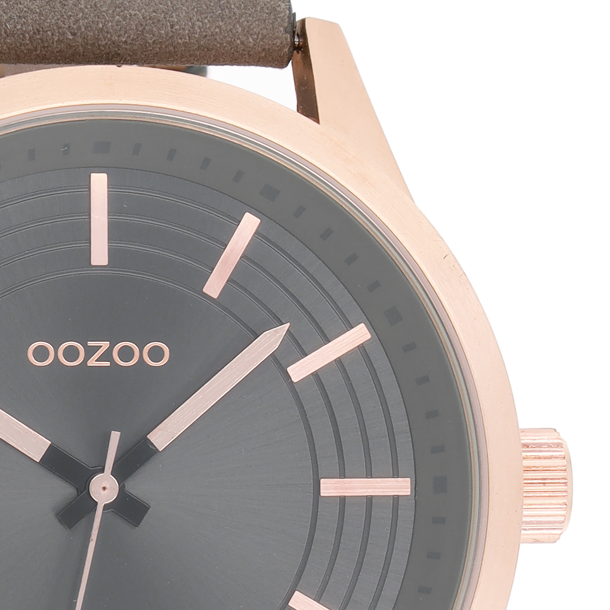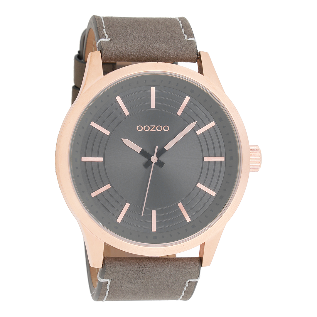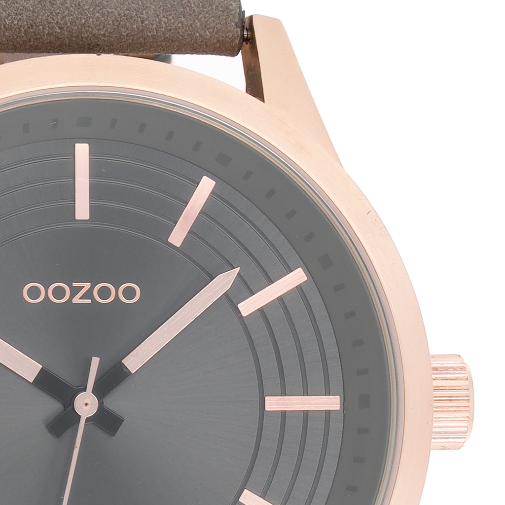 Rose gold coloured OOZOO watch with elephant grey leather strap - C9078