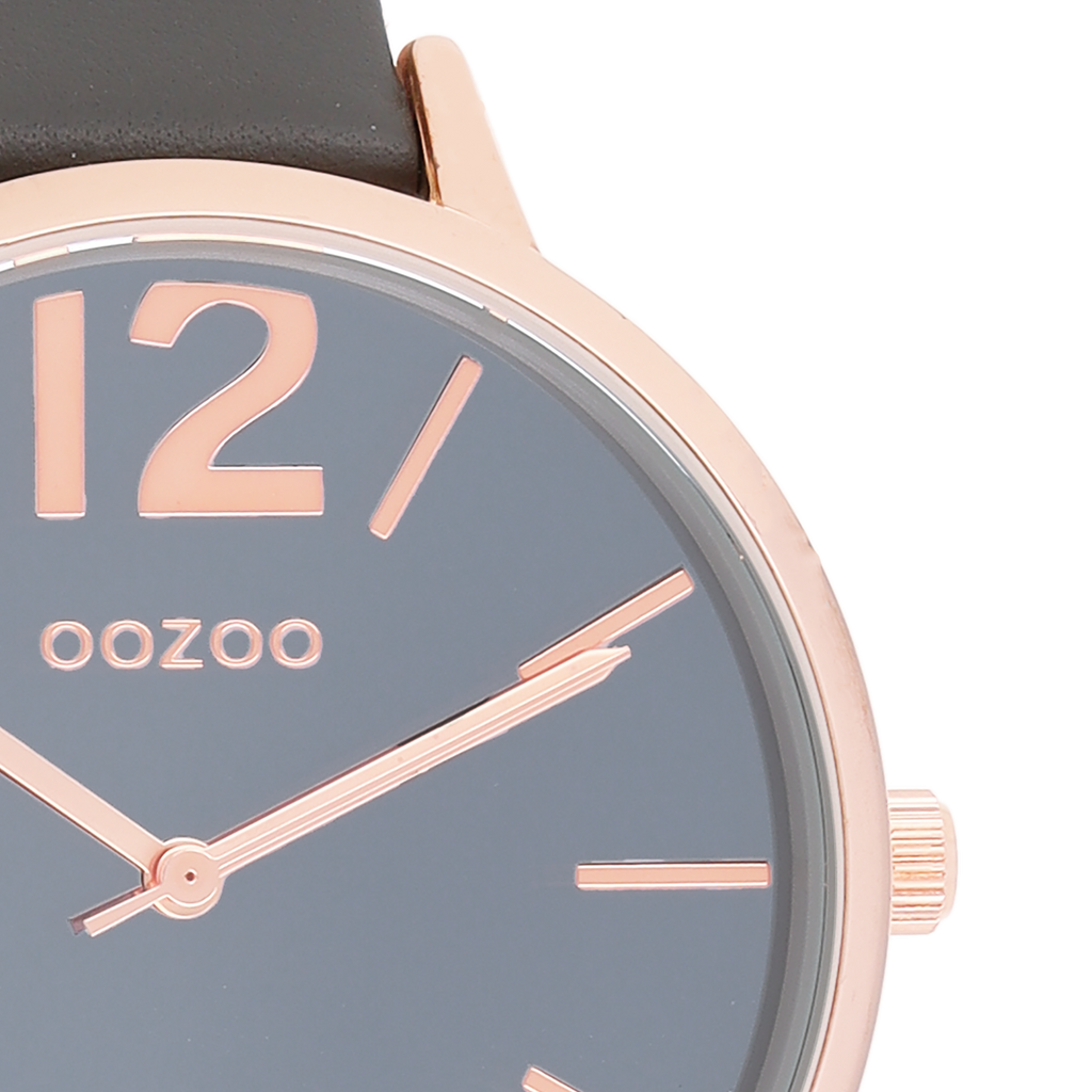 Rose gold coloured OOZOO watch with elephant grey leather strap - C9153