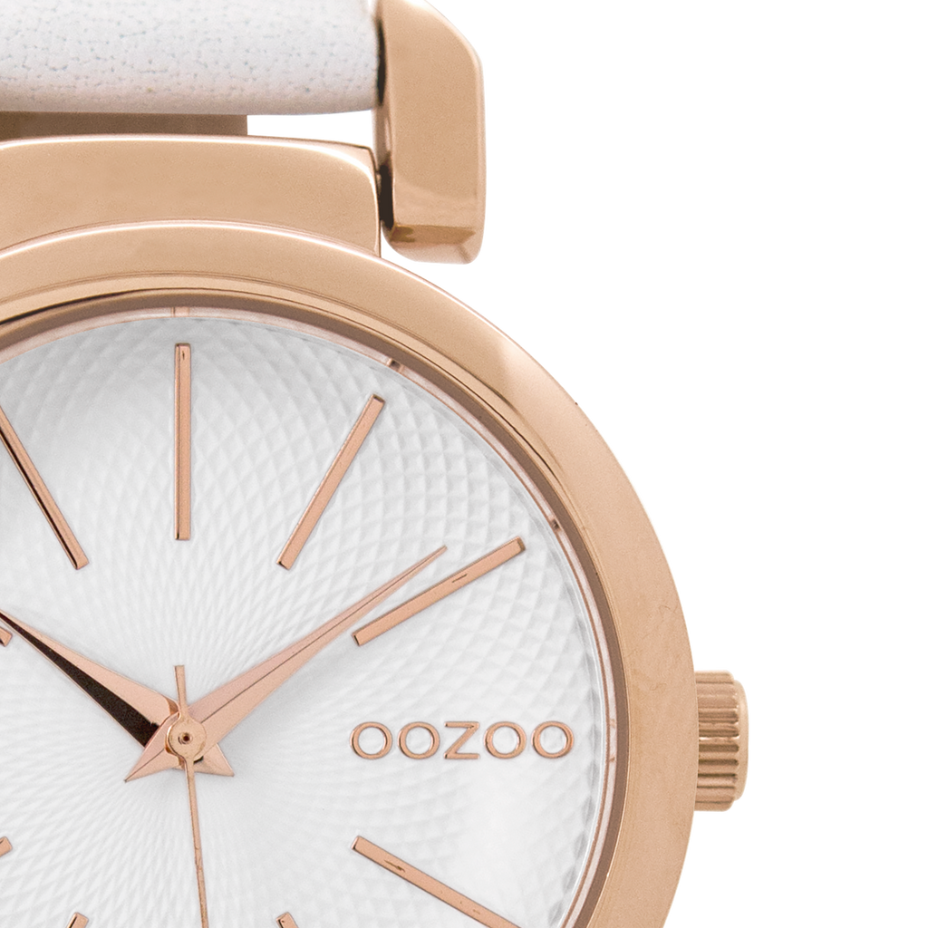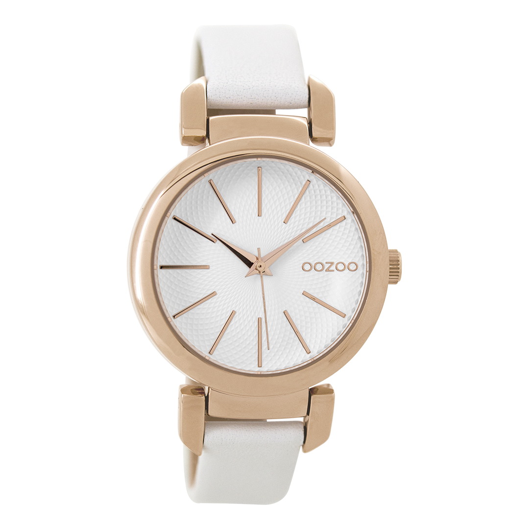 Rose gold coloured OOZOO watch with white leather strap - C9485